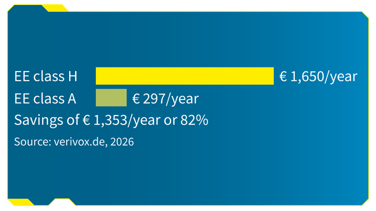 There are 16.5 million residential buildings in Germany. Over 60% of these have the lowest Energy efficiency class H.