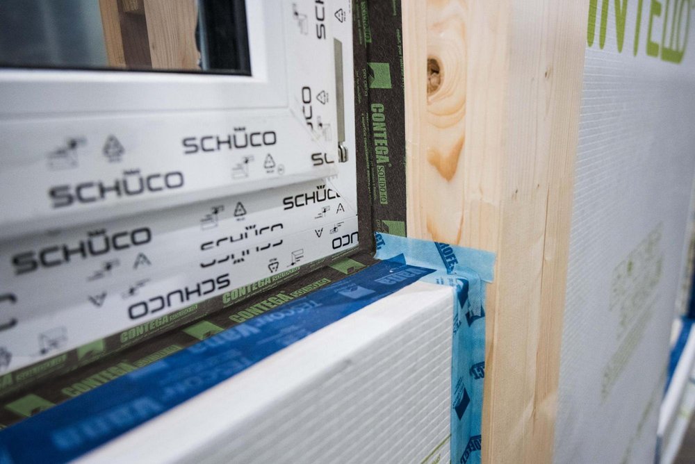 The EXTOSEAL ENCORS waterproof sill tape was used for base joints on windows and doors. With its high elasticity, this tape can be flexibly applied to corner geometries and provides excellent protection to underlying structures thanks to its verified resistance to driving rain. The CONTEGA SOLIDO IQ-D window-sealing tape and the pre-folded TESCON PROFECT adhesive tape were used for the interior window joints.