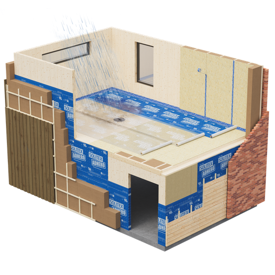 Thanks to its full-surface adhesion, this membrane provides temporary weathering-protection for intermediate floors on multi-storey CLT (cross-laminated timber) or wooden-frame buildings during the construction period.