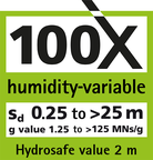 - Best possible protection against moisture damage to structures and mould because this product is humidity-variable with a variation of a factor of over 100