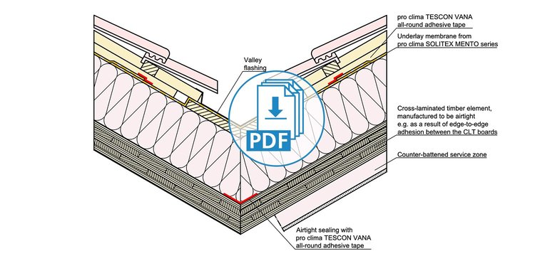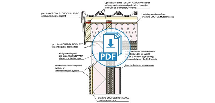 These drawings have been translated into English from German, but still feature our product recommendations for the German market. Not all of these products are available in all markets; please consult your local distributor for alternative products. Please take into account the Notes on the use of pro clima CAD drawings. By downloading any of the files here, you automatically consent to the contents of these Notes.