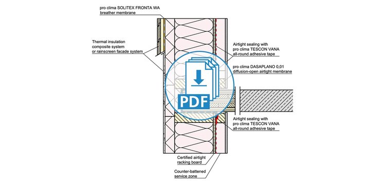 These drawings have been translated into English from German, but still feature our product recommendations for the German market. Not all of these products are available in all markets; please consult your local distributor for alternative products. Please take into account the Notes on the use of pro clima CAD drawings. By downloading any of the files here, you automatically consent to the contents of these Notes.