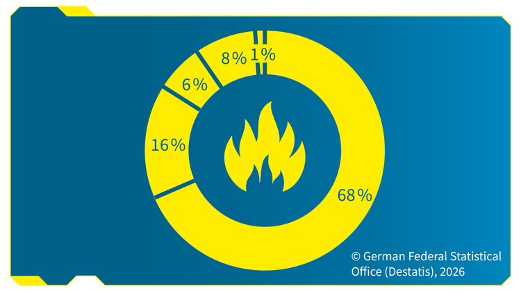 Heating 68%, Hot water 16%, Other process heat 6%, Running of other electrical devices 8%, Lighting 1%.