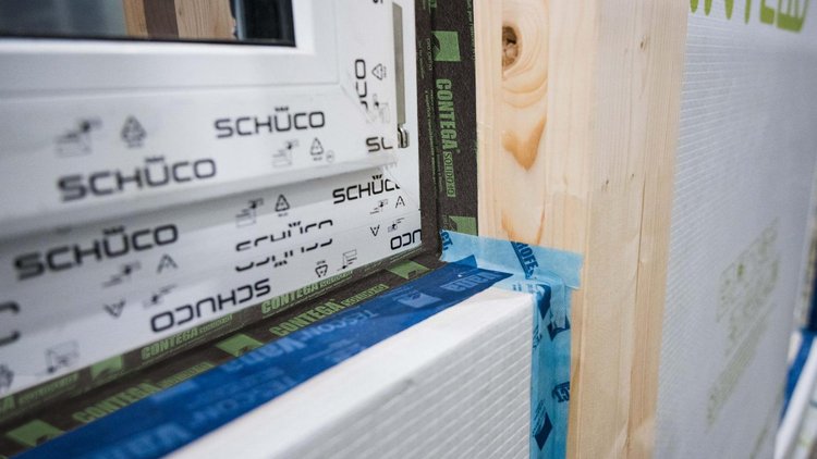 The EXTOSEAL ENCORS waterproof sill tape was used for base joints on windows and doors. With its high elasticity, this tape can be flexibly applied to corner geometries and provides excellent protection to underlying structures thanks to its verified resistance to driving rain. The CONTEGA SOLIDO IQ-D window-sealing tape and the pre-folded TESCON PROFECT adhesive tape were used for the interior window joints.