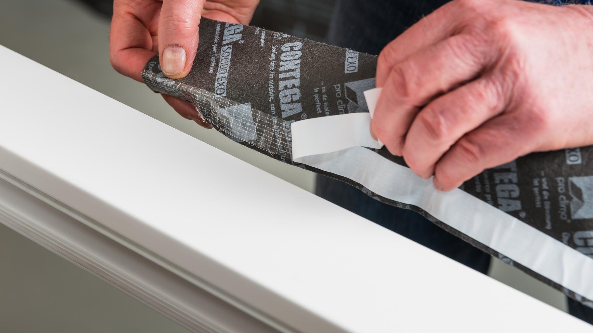Fold in the CONTEGA SOLIDO EXO-D tape so that it is not in the way, and then mount the window using a suitable fastening system.