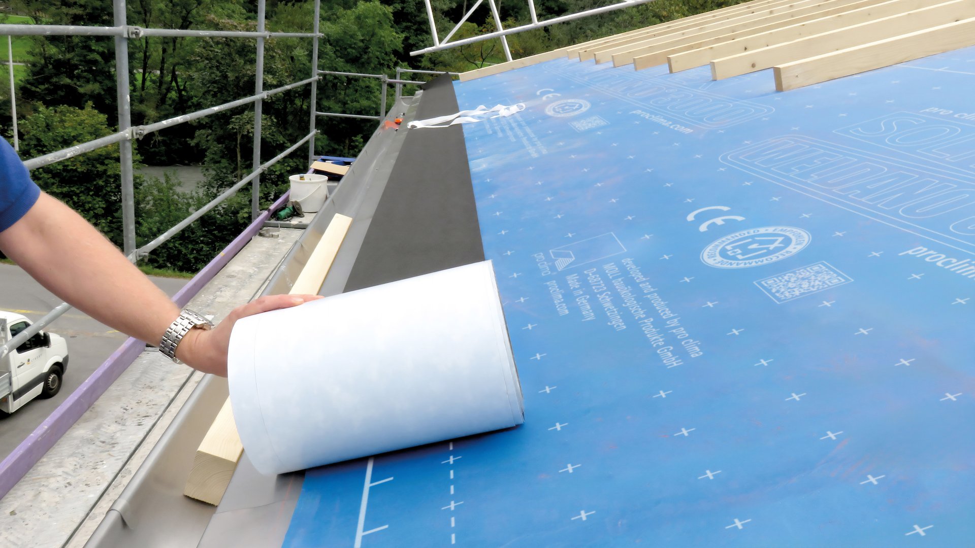 The SOLTEMPA full-surface self-adhesive strip is applied over the eave transition to provide UV protection in this area.