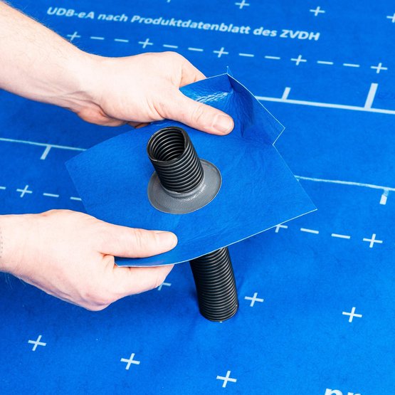 The shaped element can be welded to the SOLITEX WELDANO 3000 roofing underlay membrane in a waterproof manner using the WELDANO TURGA (HS) system solvent welding agent or hot air.